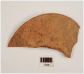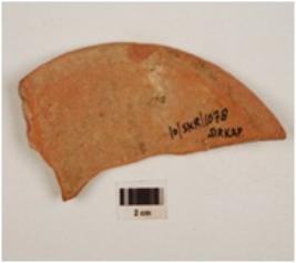 | Description / विवरण | A pot sherd of red ware vessel with flared profile, treated with dull red slip and well baked. |