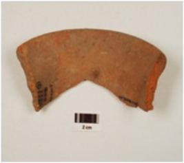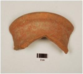 | Description / विवरण | Fragment of red ware vase, flared rim, concavity below, medium fabric, well baked and traces of red slip. |
