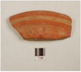 | Description / विवरण | Rim fragment of a red ware vessel, externally thick rim with a groove on outer edge, medium fabric, well baked and red slip. |