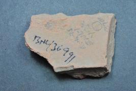 | Description / विवरण | It is a broken fragment of a pot made of terracotta was found in Banawali trench no. YE1, layer no.3. It is well fired and color is red. It has some cut marks and flaking on its surface. It is a wheel made pottery. Its outer side carved by black slip design. |