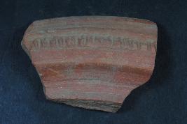 | Description / विवरण | A fragment of rim made of terracotta was found in Agroha. It is well fired and color is red. It has some incised cut on its border. It is a wheel made pottery. |