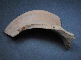 | Description / विवरण | It is a broken rim fragment of a pot made of terracotta was found in Agroha trench no.XH10,layer no.4. It is well fired and colors is red. It has some cut marks and flaking on its surface. It is a wheel made pottery. |
