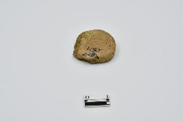 Terracotta disc made of red ware pottery.