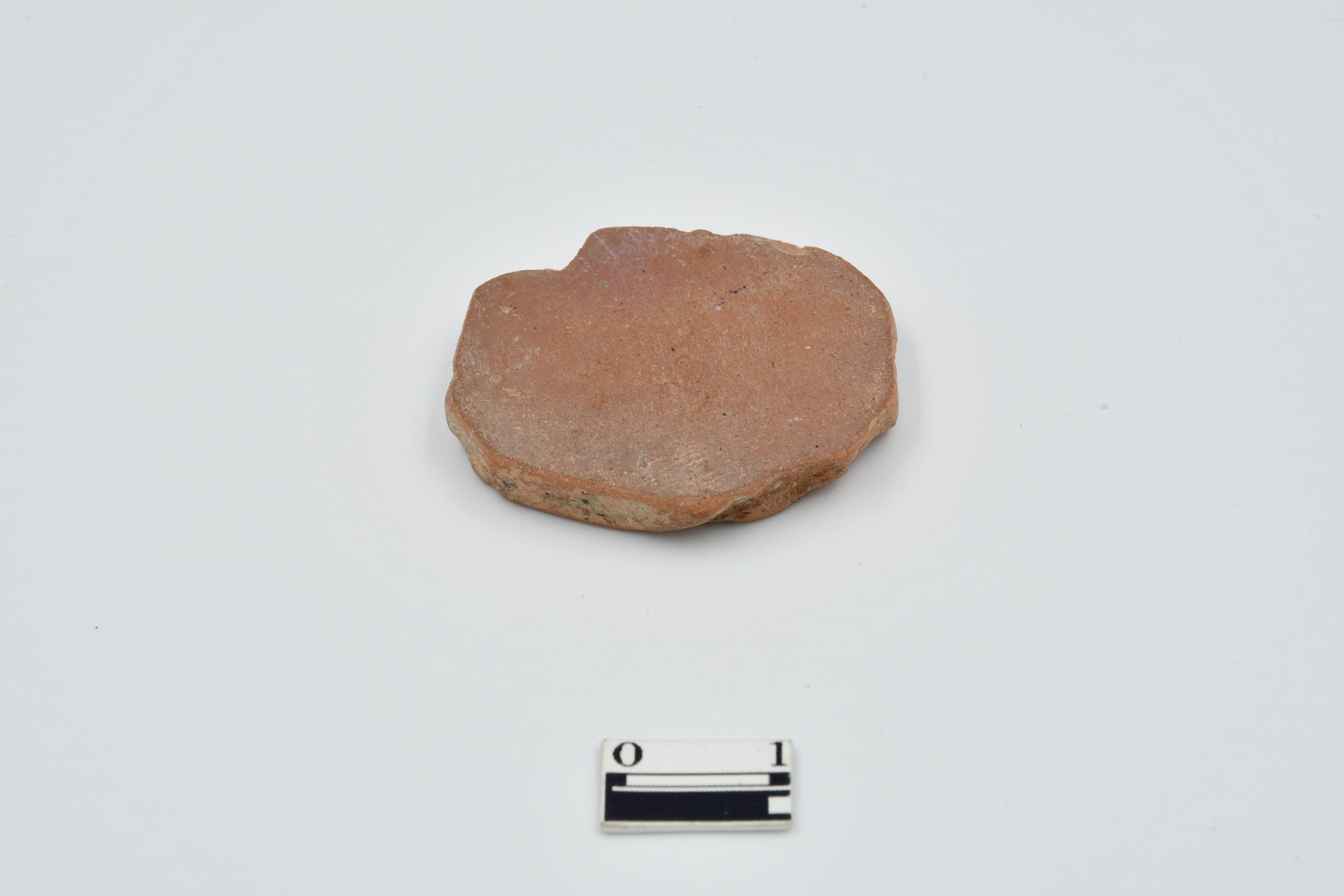 Partially broken pottery disc, Red Ware, Partially broken on the edges