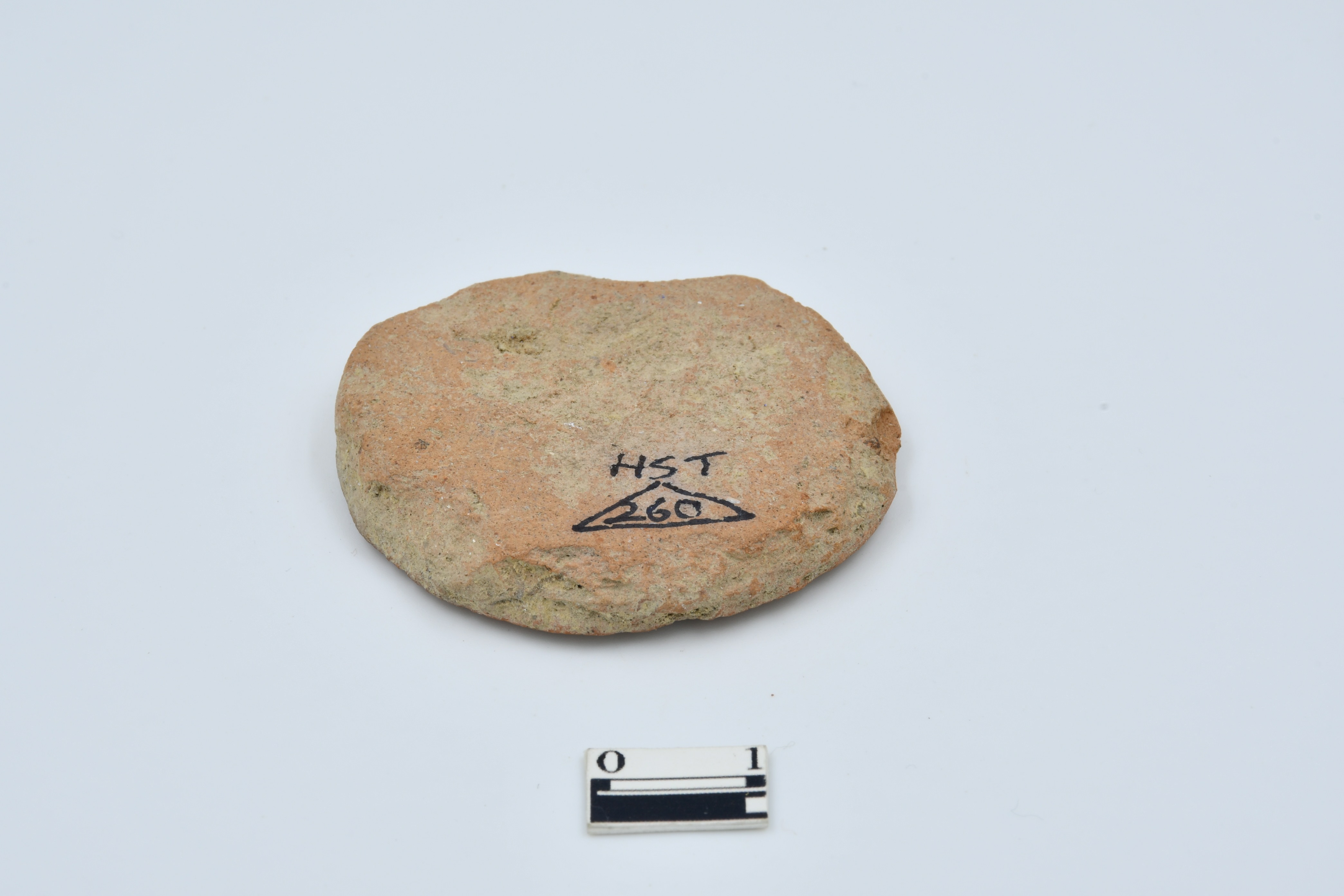 terracotta disc made of Red ware pottery, Rough from both side edges are uneven.