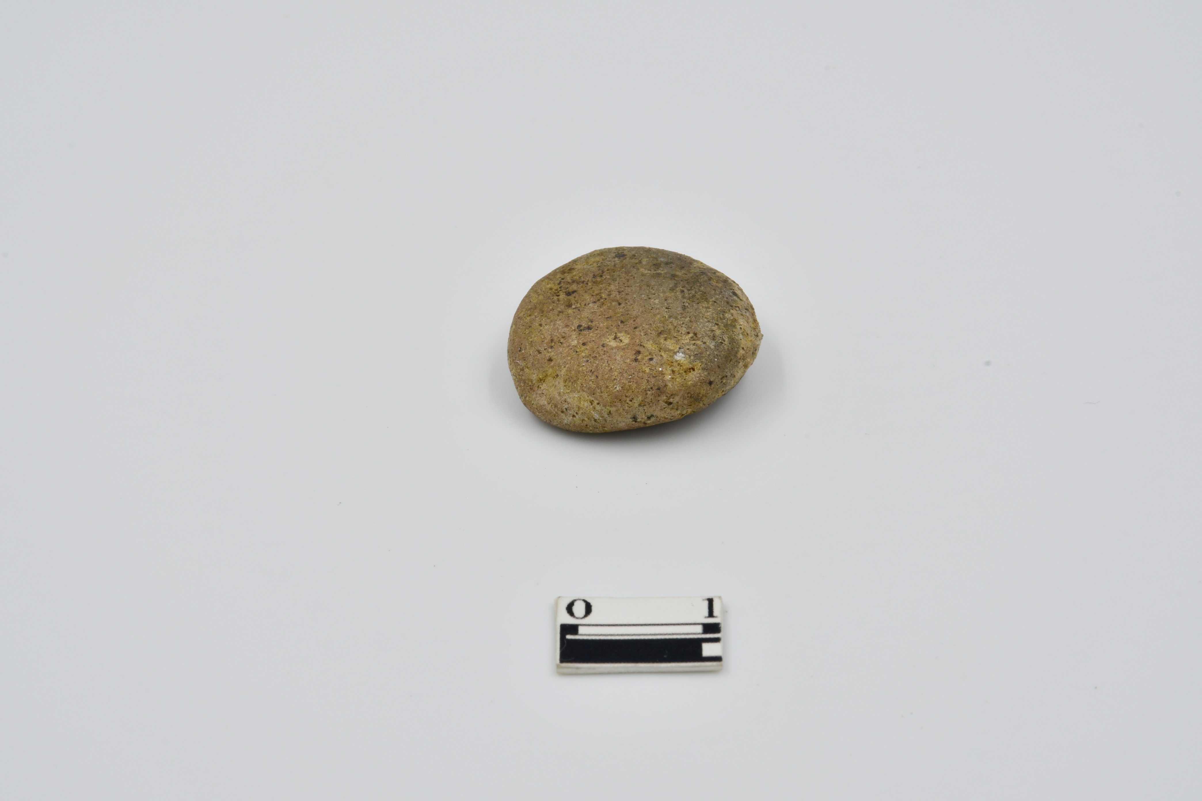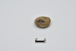 Button shaped terracotta disc, uneven in shape with blackish patch