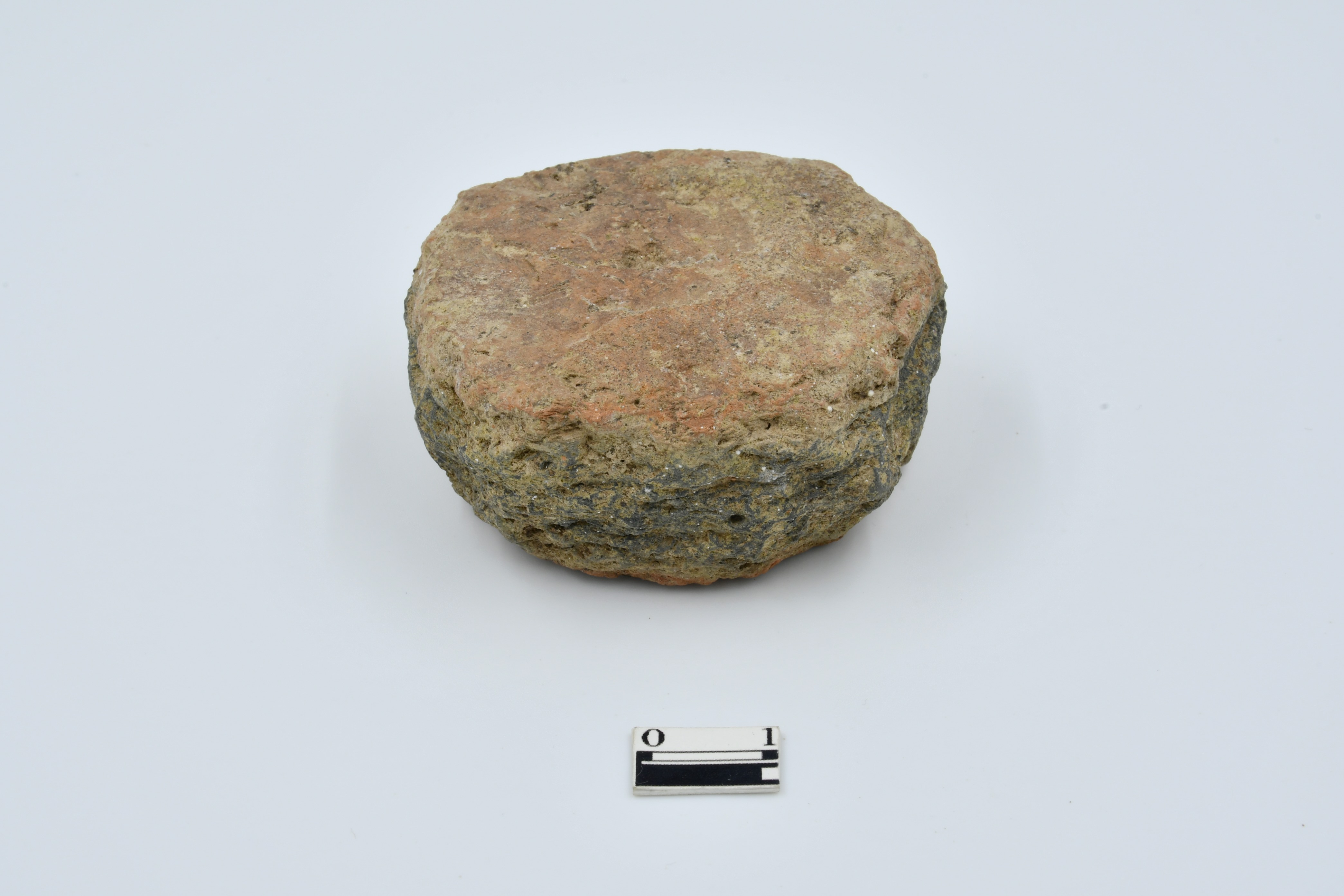 Terracotta disc made of patsherd with rough surface, Rough Surface, Both surface are red and section is black.