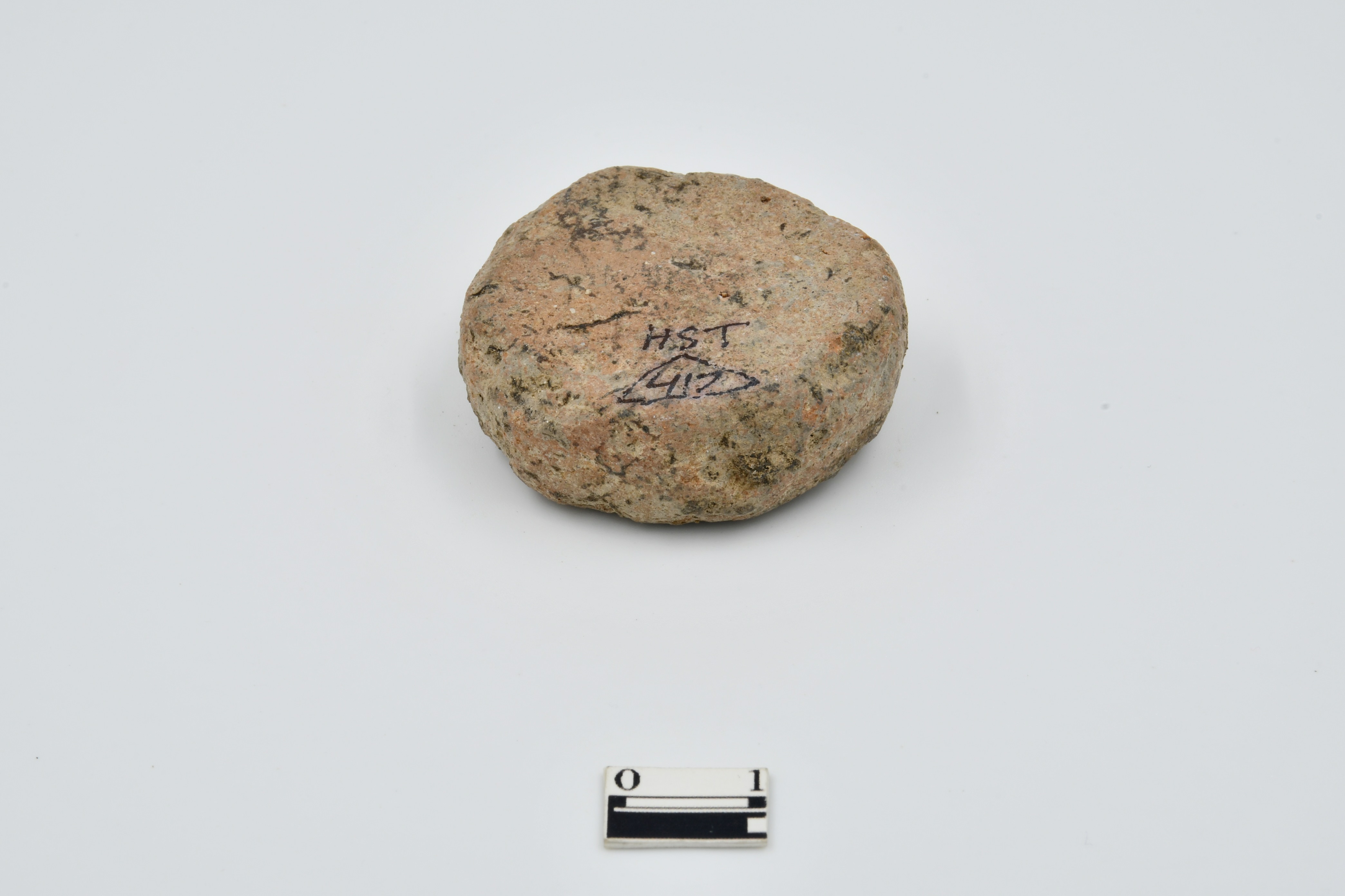 terracotta disc made of semi oxidised redware potsherd, Semi oxidized, Rough surface.