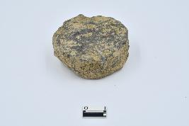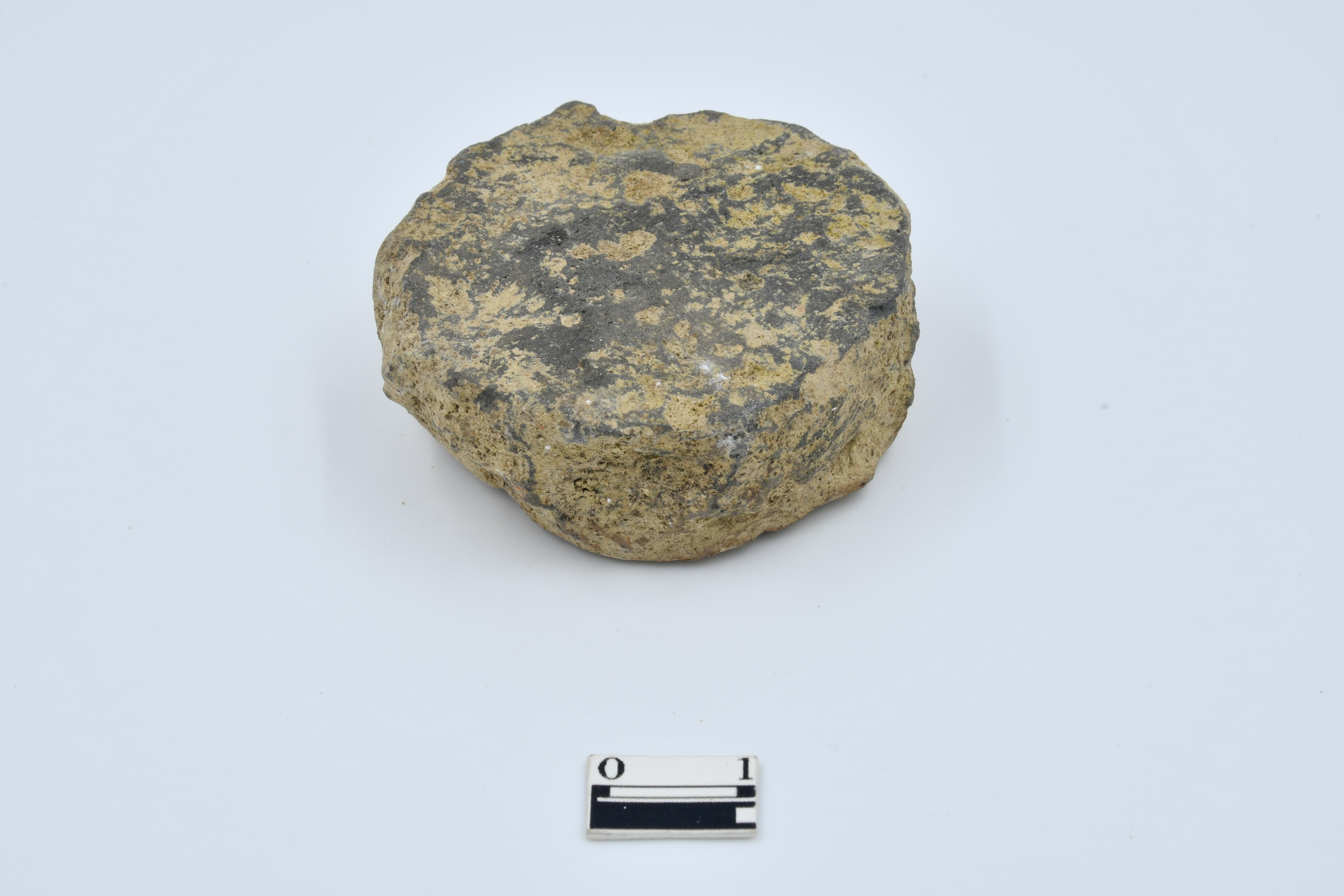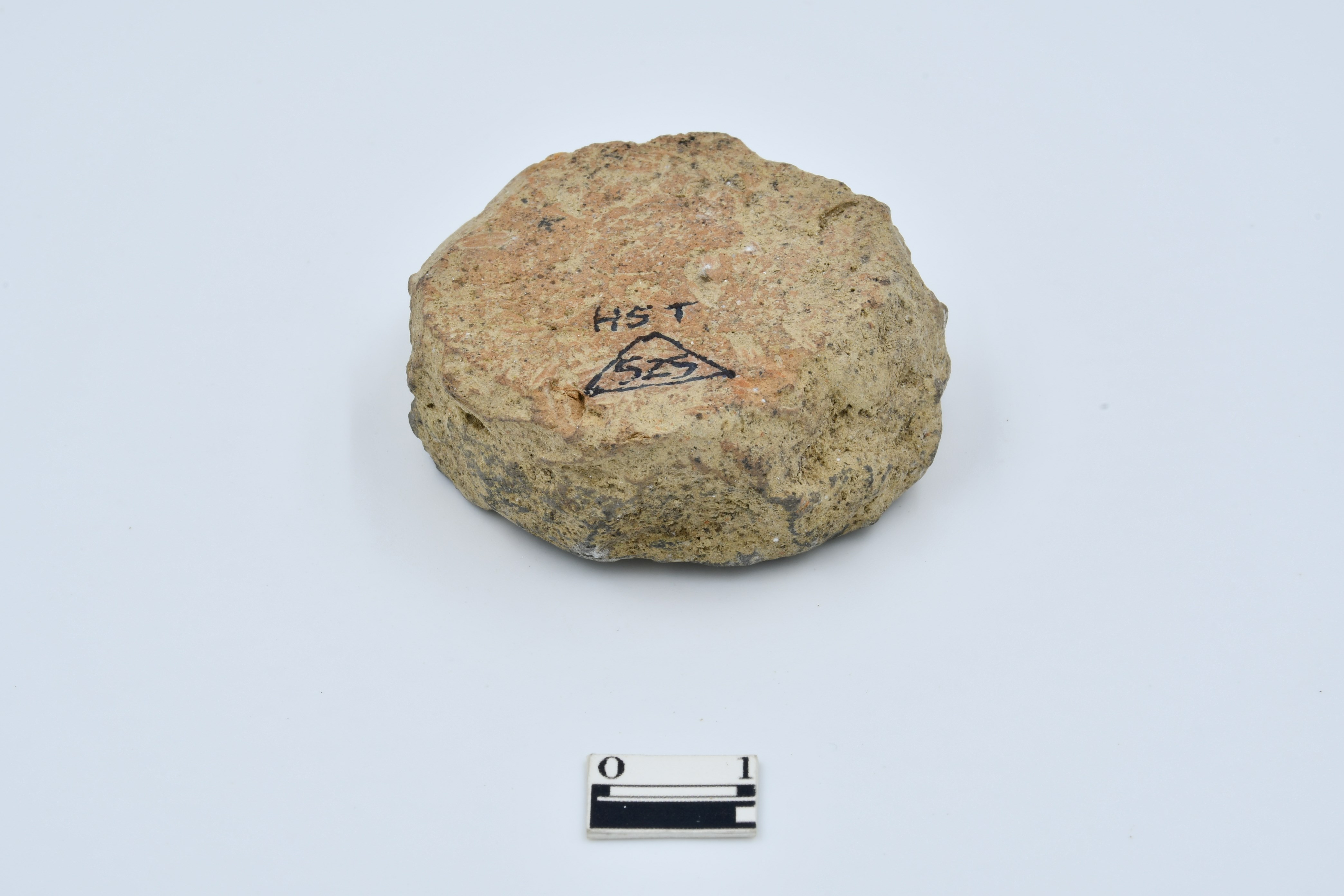 Terracotta disc made of storage jar sherd, Rough surface, one side is red, other is black