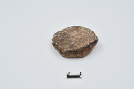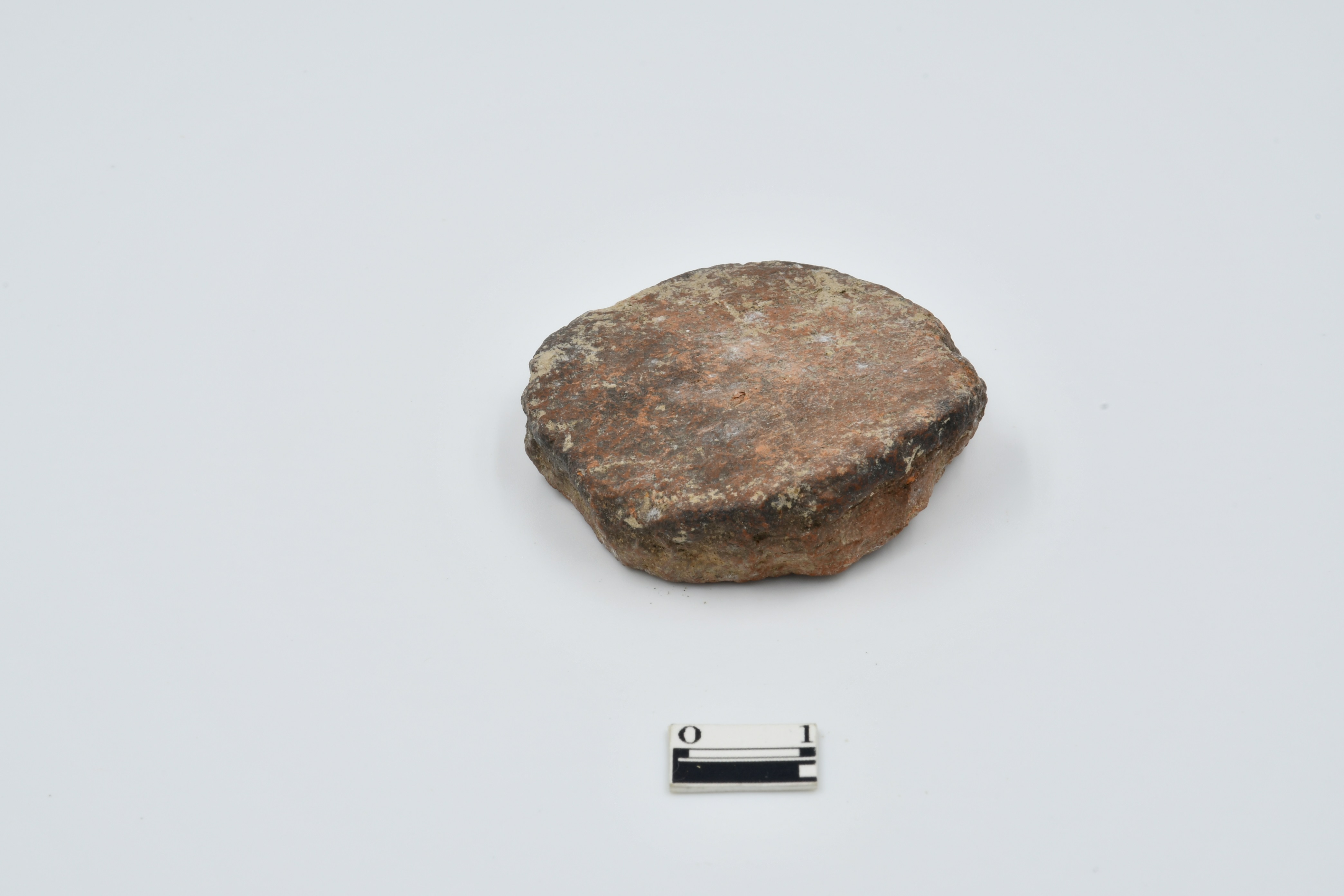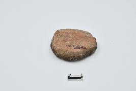 Terracotta disc made of red ware pottery, Rough surface, one side is red other is black due to burning activity