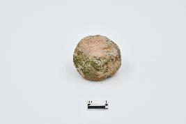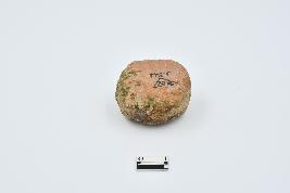 Terracotta disc made of red ware pot sherd, rough surface, chipped from edges