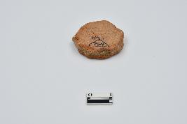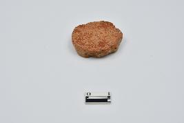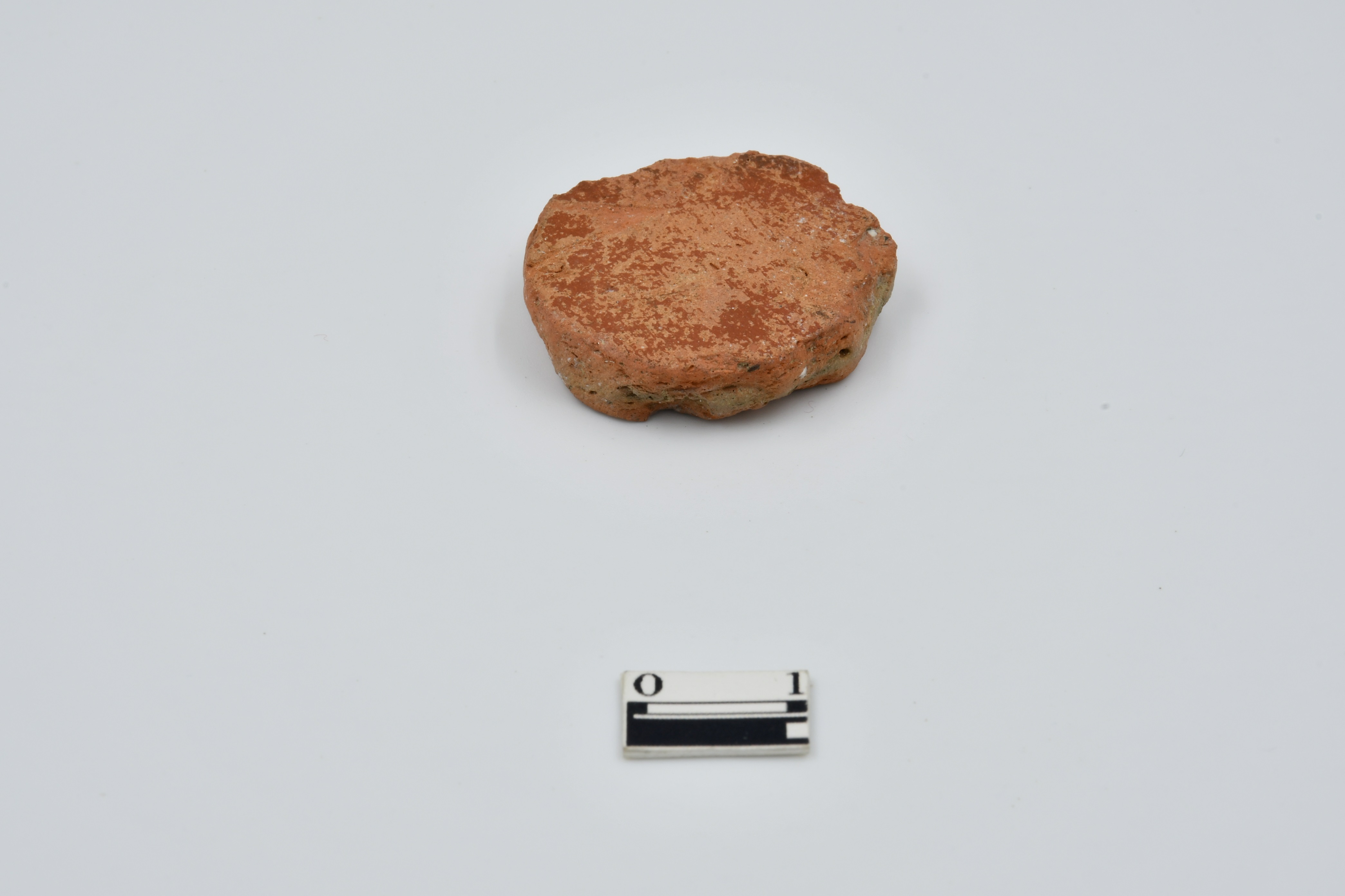Terracitta disc made of red ware pottery, Red slip is applied on one surface, uneven edges