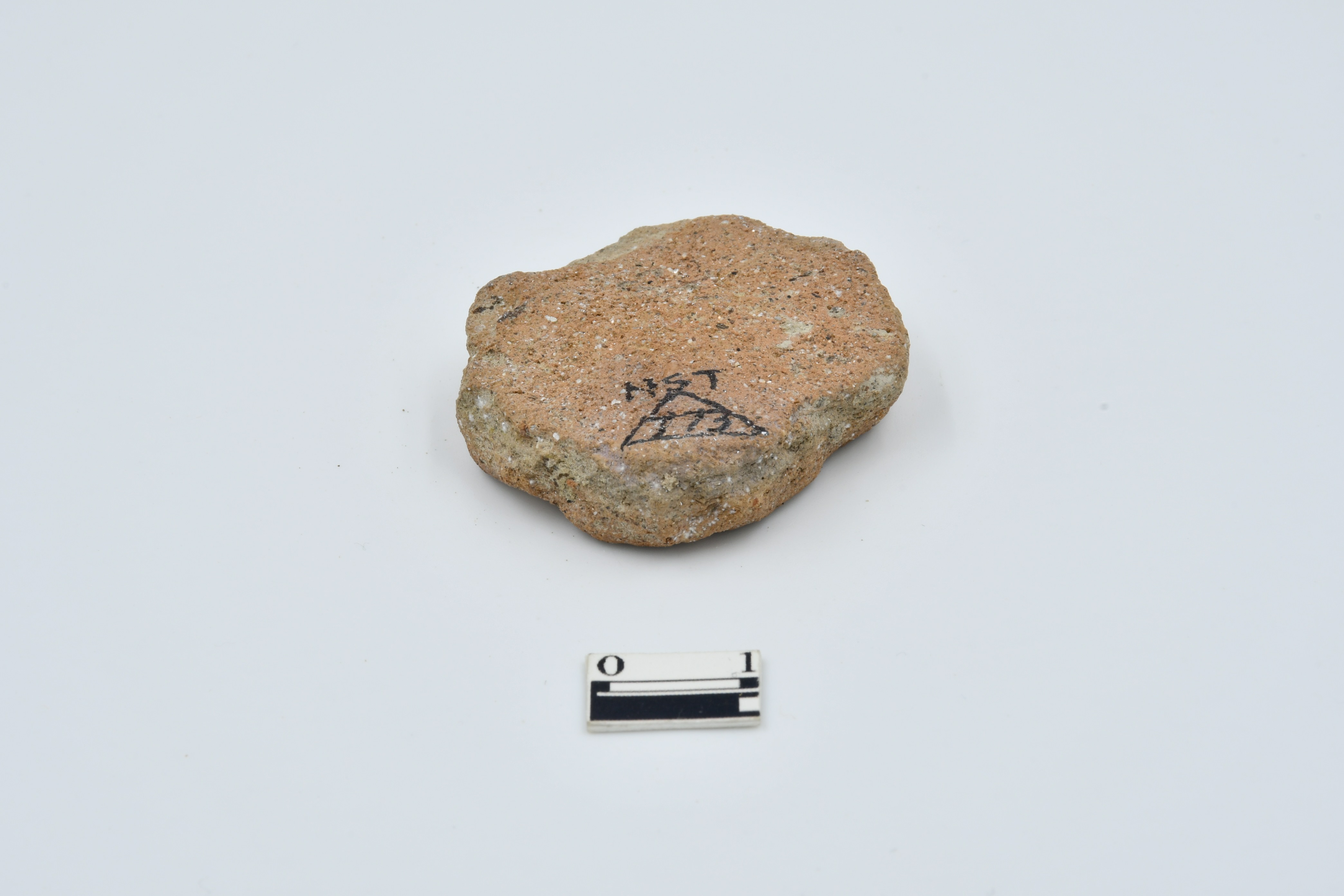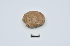 Terracotta disc made of red ware pottery, irregular in shape, rough surface, having mica content