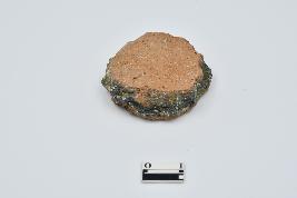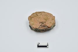 Terracotta disc made of red ware pottery, Micacious red ware, section is black, rough surface