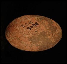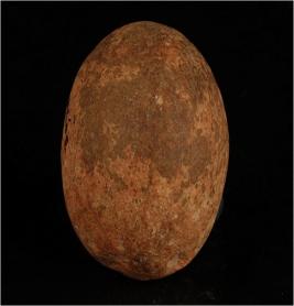 | Description / विवरण | A handmade, terracotta sling ball. Circular in shape. |