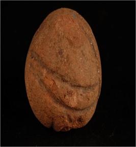 | Description / विवरण | A handmade, terracotta sling ball circular in shape, grooved designed and given a wash treatment in red colour. |