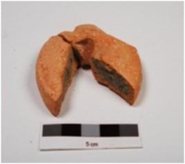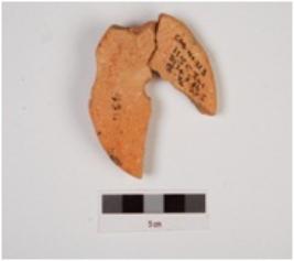 | Description / विवरण | Fragments of a terracotta wheel with trace of red slip. |
