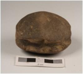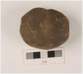 | Description / विवरण | A handmade terracotta well baked bi-conical shaped unidentified object with grooved edges. |