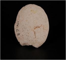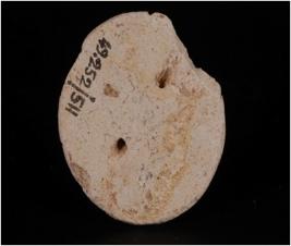 | Description / विवरण | A button made of steatite, circular in shape and convex surface, a transverse perforation on the bottom and slightly broken periphery. |