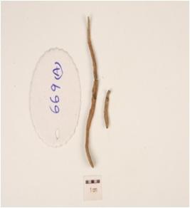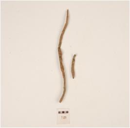 | Description / विवरण | A copper spike with rough surface, bent, pointed at one end and flat at other end, rectangular in section and green incrustation on surface. |