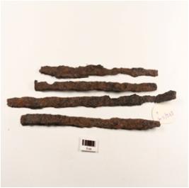 | Description / विवरण | A rod fragments made on iron, rough surface with rusting, partly broken from surface. |