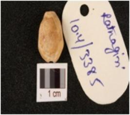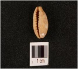 | Description / विवरण | A natural shell cowrie with bulbous top, groove on bottom and dusty surface. |