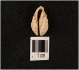 | Description / विवरण | Cowrie, natural marine shell, bulbous top surface, natural grooved line on bottom and powdery surface. |