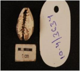 | Description / विवरण | Cowrie, natural marine shell object with powdery surface, natural groove line at bottom and white in colour. |