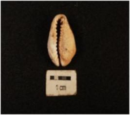 | Description / विवरण | A cowrie shell with bulbous top, natural groove at the base, powdary surface and off white in colour. |