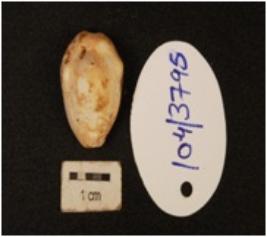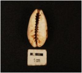 | Description / विवरण | A cowrie shell with bulbous top, natural groove at the base, powdary surface and off white in colour. |