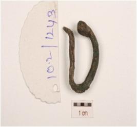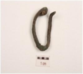 | Description / विवरण | A fragment of unidentified copper object, pointed on one end, spiral on other end, chemically treated and rough surface. |