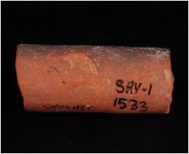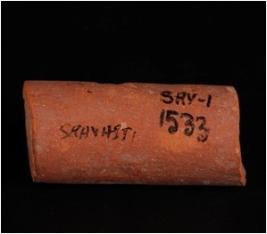 | Description / विवरण | A fragment of a handmade unidentified terracotta object, given a wash treatment in red colour, cylindrical in shape and circular cross section. |