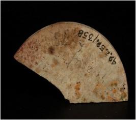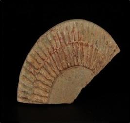 | Description / विवरण | Fragment of unidentified faience object decorated with incised design on surface and flat base. |