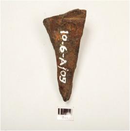 | Description / विवरण | A indeterminate object made on iron, conical shape, pointed at one end, broken at other end, rusted surface, rectangular in section. |