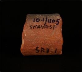 | Description / विवरण | Cylindrical shaped terracotta unidentified object, circular sections and red in colour. |