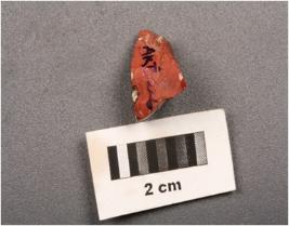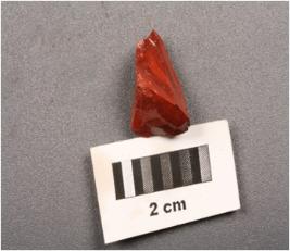 | Description / विवरण | Fragment of a opeque glass, red in colour and smooth surface. |
