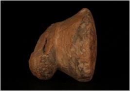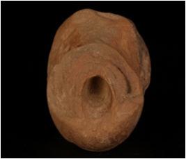 | Description / विवरण | Terracotta dabber with a solid handle. The hole in the handle is evidently for inserting a rod. Top part of handle is partly broken. |