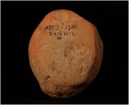 | Description / विवरण | Hadmade terracotta ball partly broken and uneven surface. |
