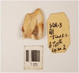 | Description / विवरण | Fragment of unidentified bone object, weavy edge. Grooved on surface. |