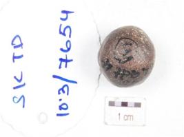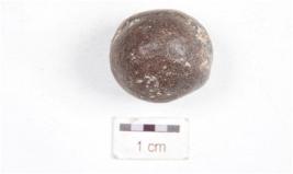 | Description / विवरण | A sling ball made on stone, circular in shape and polished surface. |