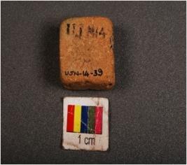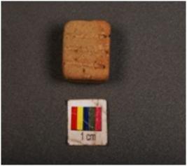 | Description / विवरण | Handmade terracotta tablet with three incised parallel lines on the flat surface, well baked, surface treated with wash in dull red colour, square in shape. |