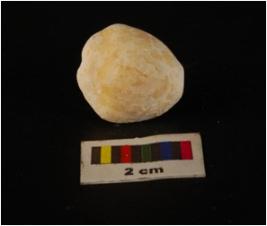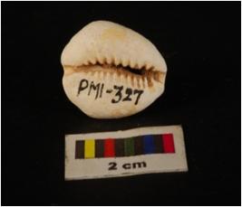 | Description / विवरण | Cowrie Shell with partly powdery surface and interior. Incised natural lines on interior. |