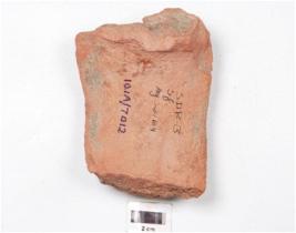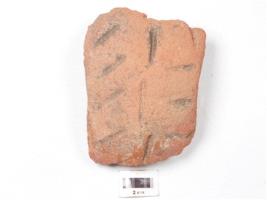 | Description / विवरण | Fragment of a terracotta handle with incised designs on the surface, made with fine clay and well baked. |