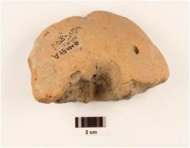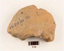 | Description / विवरण | Fragment of a handmade terracotta hubbed wheel, circular in shape, uneven surface and made with coarse fabric. |