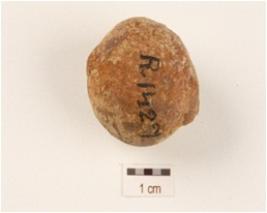 | Description / विवरण | Sand-stone sling ball with rough surface. |