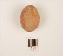 | Description / विवरण | Terracotta sling ball, red slip on surface spherical in shape. |