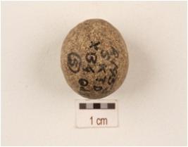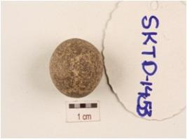 | Description / विवरण | Sandstone slingball with smooth surface. |