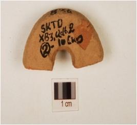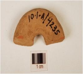| Description / विवरण | A fragment of terracotta wheel, slightly chipped off well baked and treated with wash in red colour. |