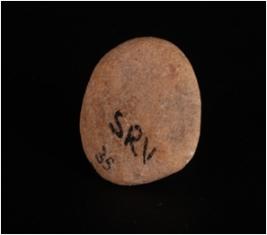 | Description / विवरण | A stone miniature disc, rough surface and uneven edges. |