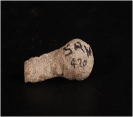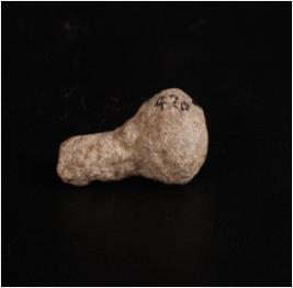 | Description / विवरण | A mace made on calcite with a long base and round bulbous top with weathered surface. |